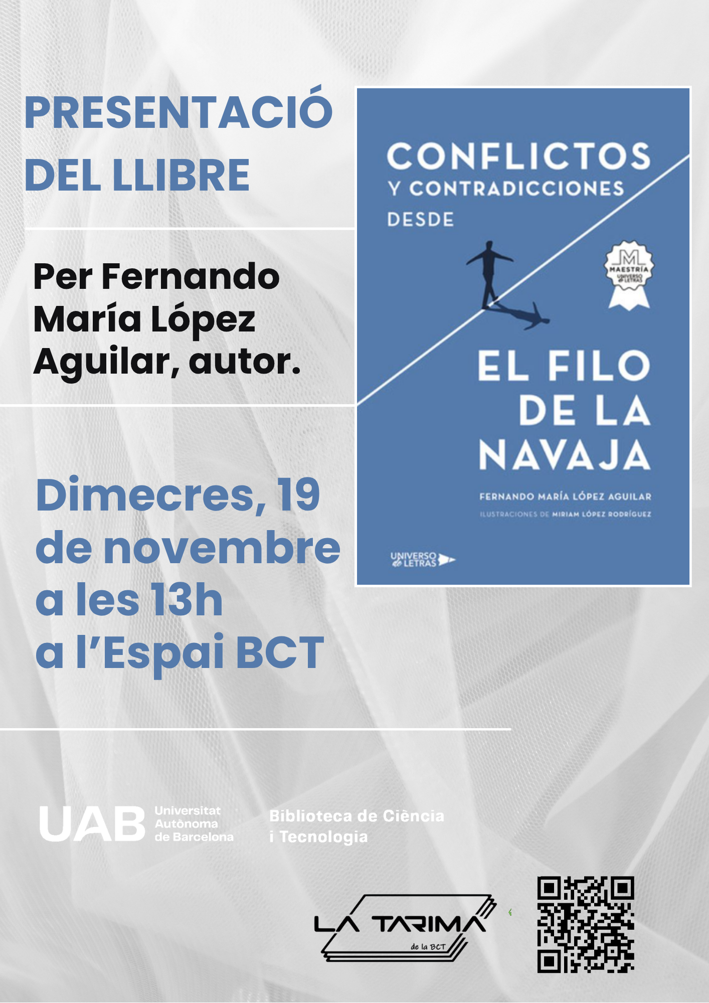 Dimecres 19 de novembre a les 13h: Presentació del llibre Conflictos y contradicciones desde el filo de la navaja. A càrrec de l'autor, Fernando María López Aguilar, i la col·laboració de Carles Navau.
