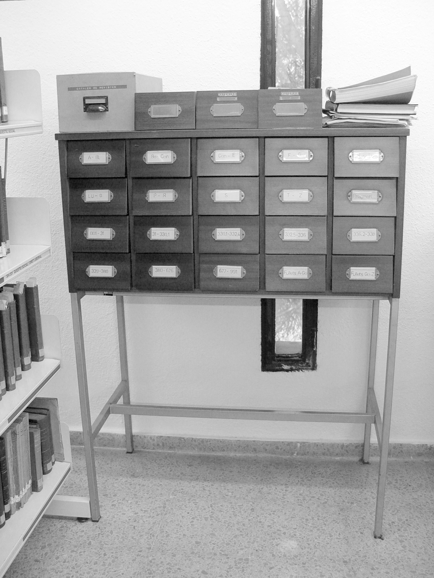 Fa uns anys les biblioteques només disposaven de catàlegs manuals per poder informar a l'usuari sobre el contingut del seu fons documental (en un principi bàsicament llibres i revistes). Més tard es van començar a introduir en el catàleg documents en altres tipus de suport (microformes, disquets, vídeos...). Aleshores només es podien fer cerques per Autor, Títol, Matèria i CDU (Classificació Decimal Universal). Podem dir que la carta de serveis era reduïda.