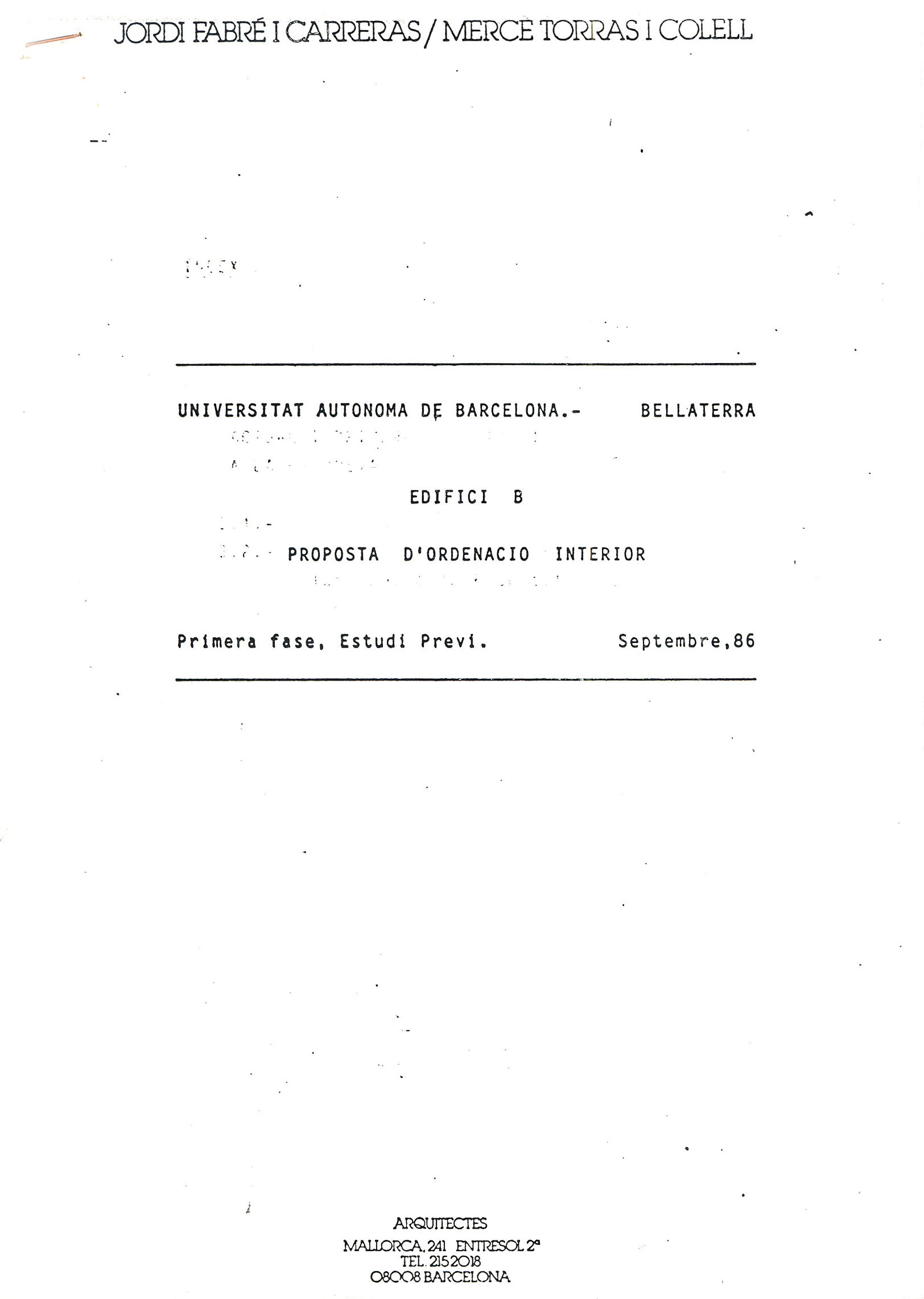 Jordi Fabré i Carreras / Mercè Torras i Colell. Edifici "B". Proposta d’ordenació interior. Primera fase. Estudi Previ