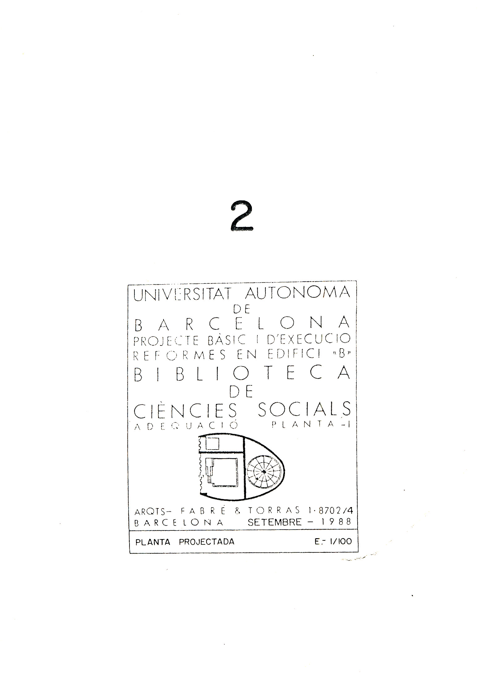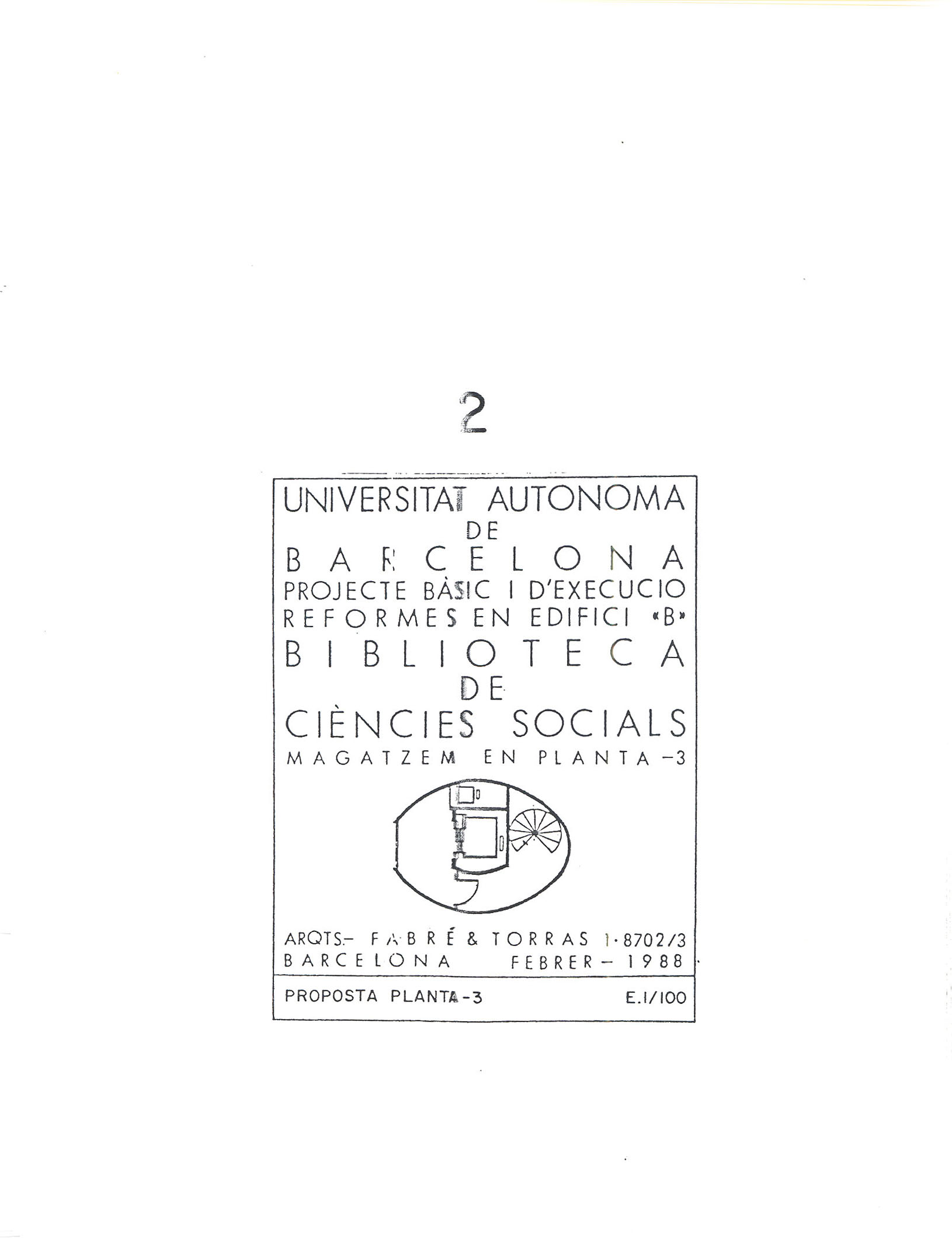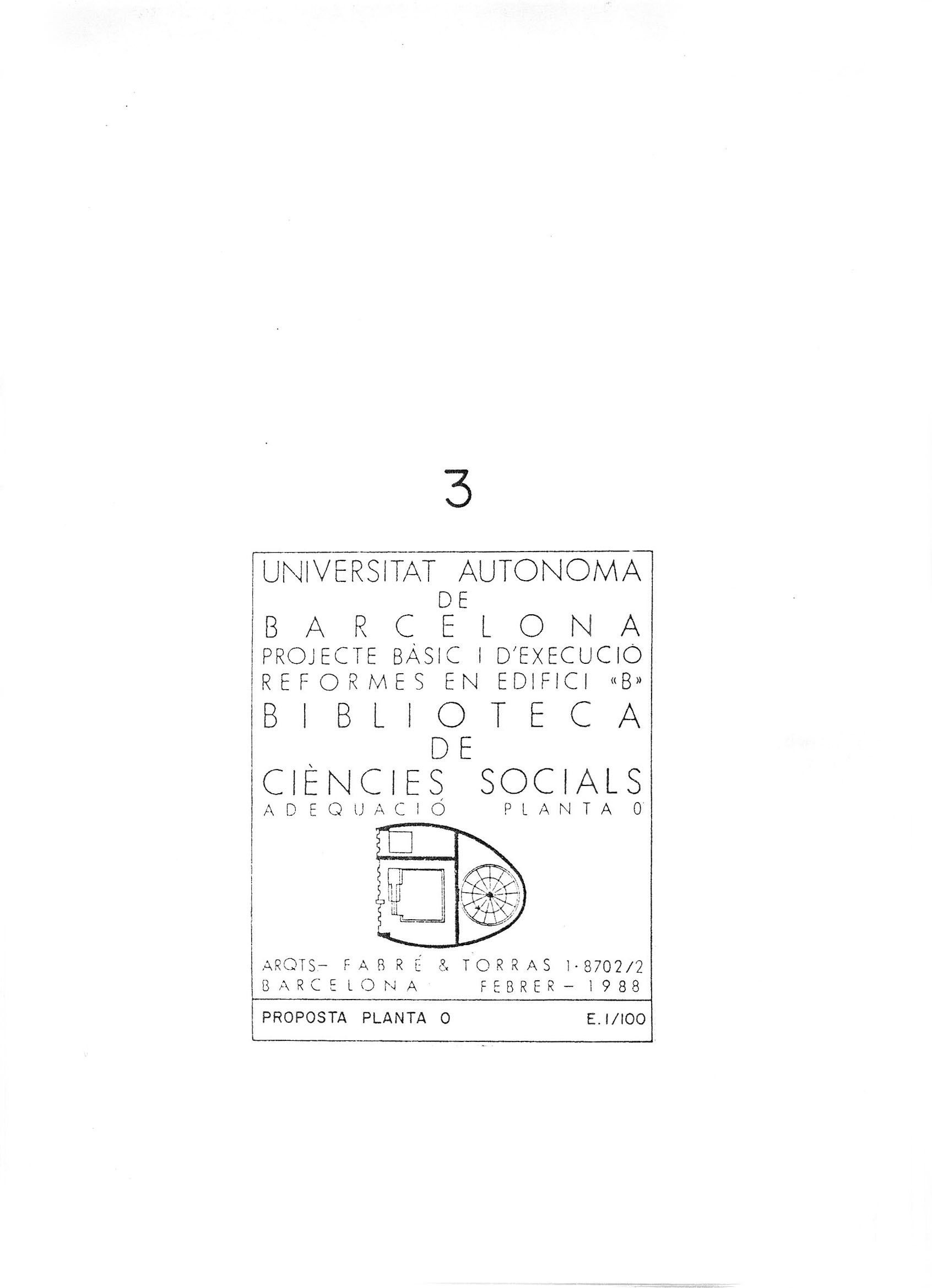 Projecte bàsic i d’execució reformes en edfici "B". Biblioteca de Ciències Socials. Adequació planta 0. Arqts. Fabré and Torras