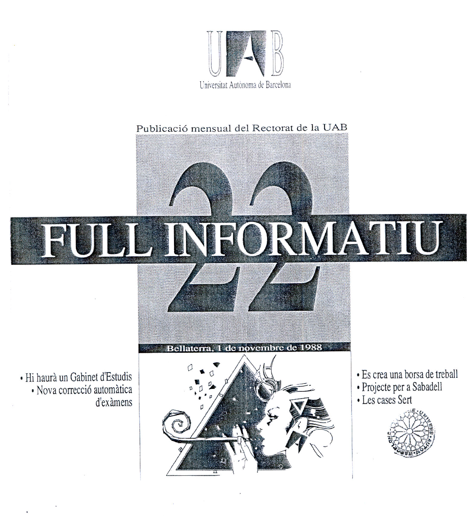 Full Informatiu. 1988, nov., núm. 22. Bellaterra. Publicació mensual del Rectorat de la UAB
