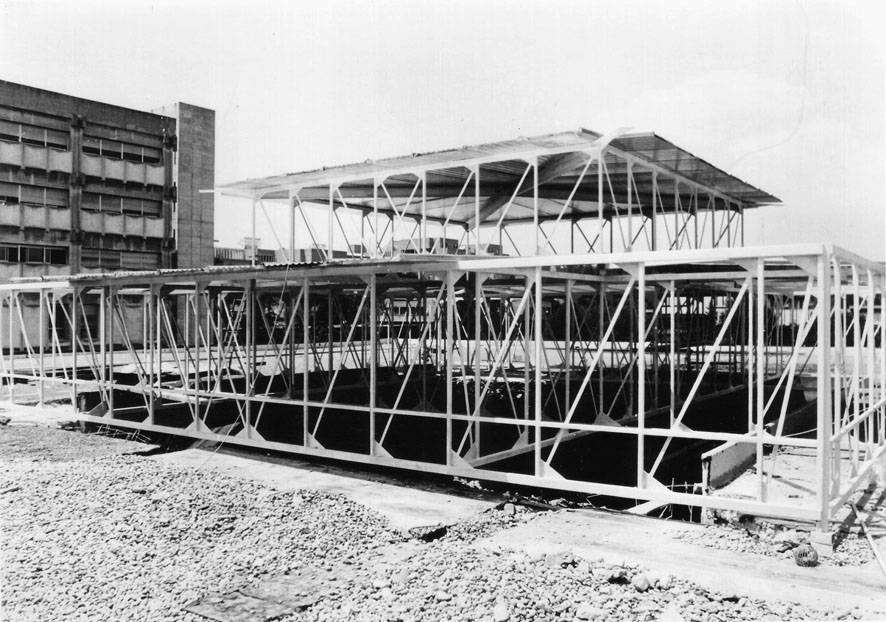 Planta 0 Taulell de referència i revistes de la Biblioteca de Ciències Socials durant la seva construcció