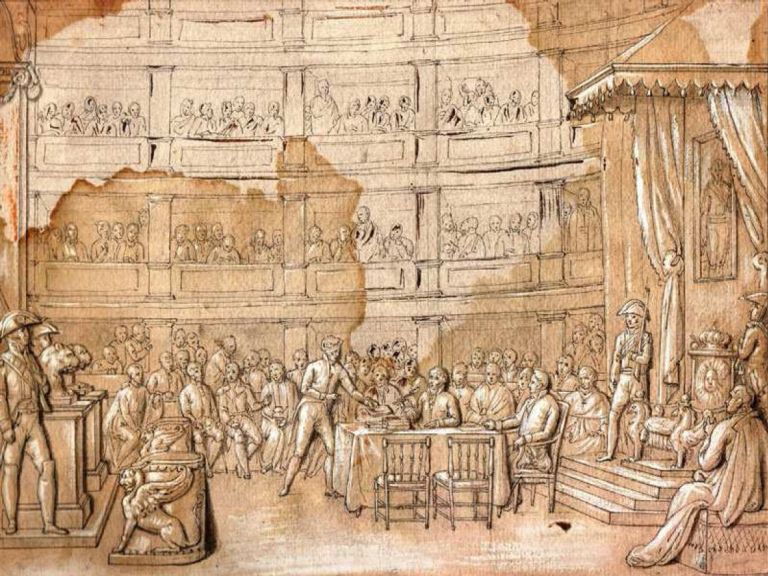 Agrair la col·laboració de Palau Antiguitats per autoritzar-nos l'ús de la imatge de la capçalera: Acte de les Corts Generals i Extraordinàries celebrades al Teatro Real de la isla de León (San Fernando, Càdis) el 24 de setembre de 1810, atribuït a Bonaventura Planella (1772-1844).